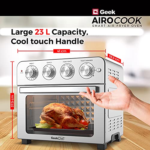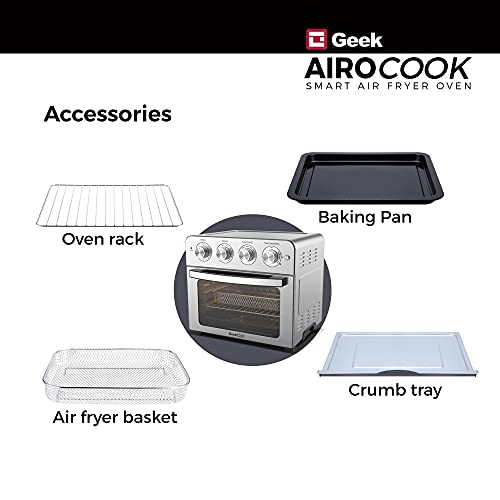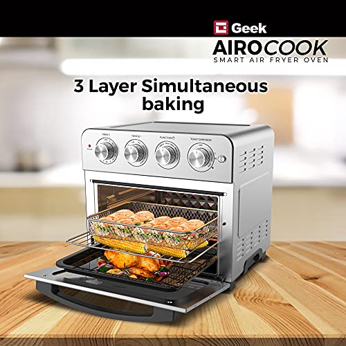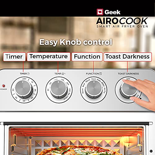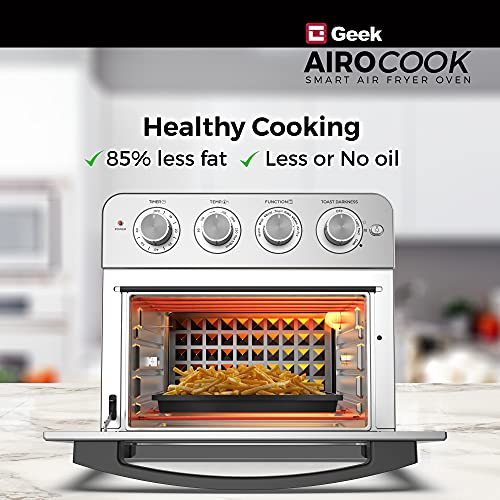 2-IN-1 DESIGN : Now bake and fry your favourites with 85% less fat and oil free with Geek Chef AiroCook smart Airfryer oven. The 23L Oven Toaster griller can now be used as a countertop oven and an Airfryer to your needs at home