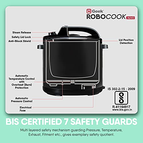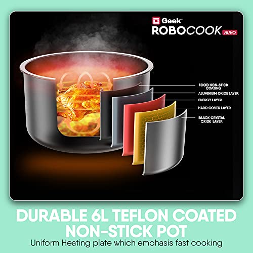 Geek Robocook Nuvo 6 Litre Electric Pressure Cooker with Non Stick Pot, Black