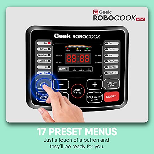 EXTRODINARY FEATURES : Control over to u! Delay timer, Saute, Keep warm, and set Manual timing to your convenience with Geek Robocook Nuvo automatic electric pressure cooker.