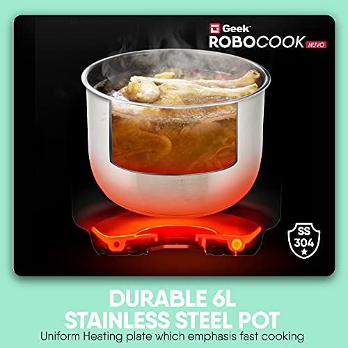 Geek Robocook Nuvo 6 Litre Electric Pressure Cooker with Stainless Steel Pot, Black