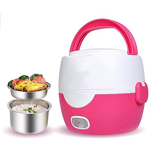 New and Imported Material: Steel Inner Pot Power: 200W Voltage: 220V Capacity: 3L Color: Rose Red and White Package Included: 1*Rice cooker heating electric double layer lunch box