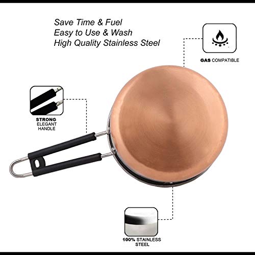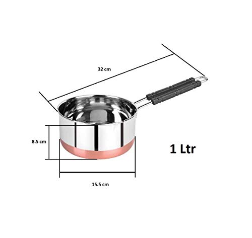 Material: Export Quality Mirror Polish Stainless SteelCopper Bottom Saucepan making it ideal for daily use, highly durable & long lasting.