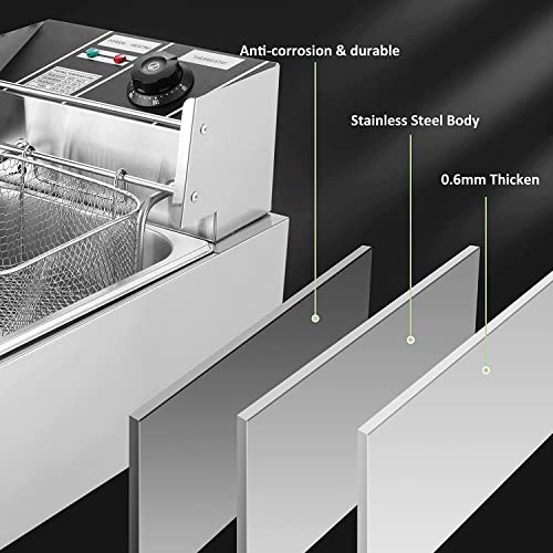 6L/6.3QT Commercial Electric Deep Fryer with Removable Basket