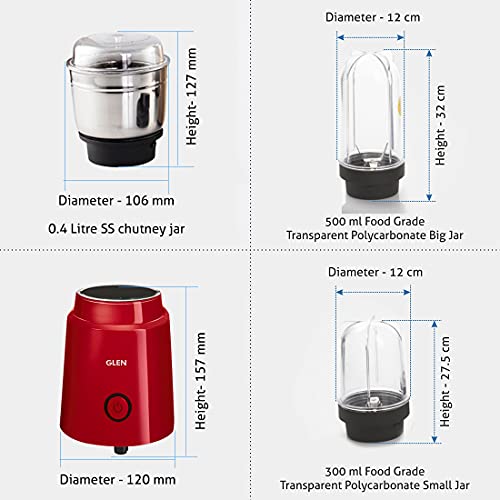 Glen 4048 Active Blender Juicer Grinder 350 W Red with 3 Interchangeable Jars 2 years warranty, Red (ISI Certified)
