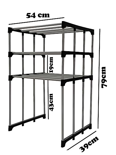 ✔This stand is a versatile and practical addition to any kitchen. It is designed to hold both a microwave and an OTG (oven toaster griller) on its double platform, which is made of sturdy metal. The stand also features three shelves, providing extra storage space for kitchen essentials such as dishes, utensils, and cookbooks.