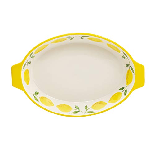 Grace Teaware hand painted ceramic 12-inch oval casserole dish with handles and a vibrant Yellow Lemons design.