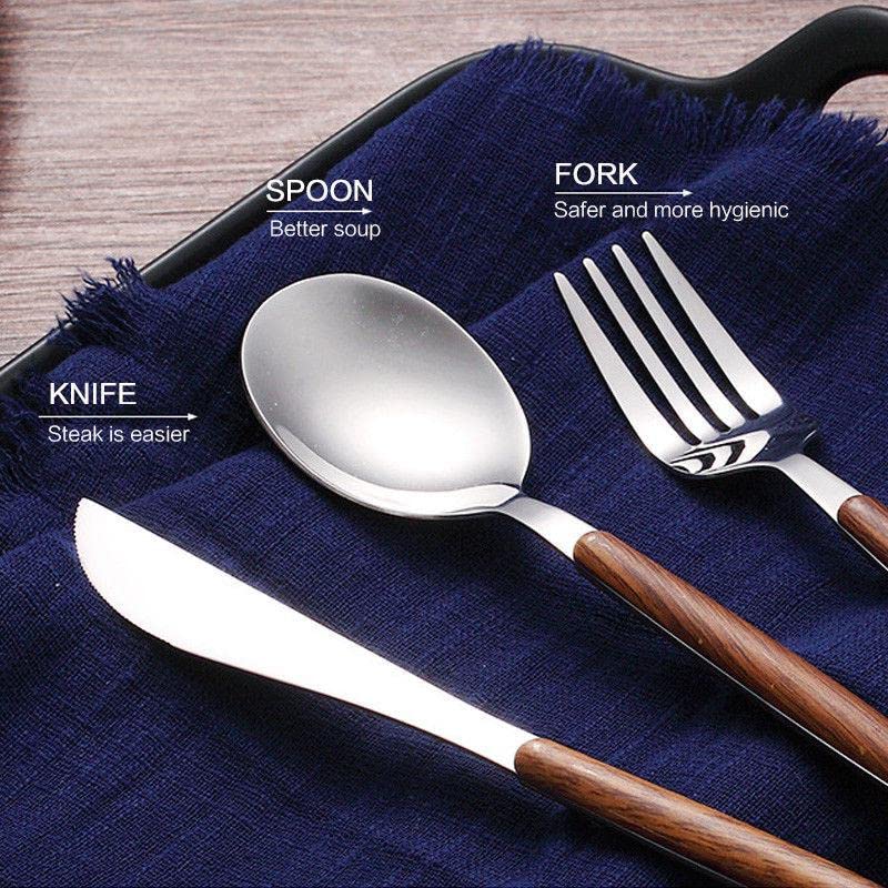 SAFE & FOOD-GRADE MATERIAL: Our flatware cutlery set is made of premium safe and food-grade stainless steel, which is eco-friendly, non-toxic, BPA free.