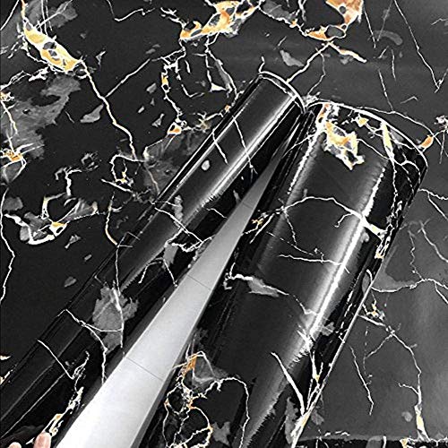 Graymark™ Black High Gloss Marble Furniture Film Interior Film Wallpaper for Cupboard Door, Almirah, Fridge, Tabletop, Wall, Floor, DIY & Other Renovation Projects (24 inch x 72 inch) (Black High Gloss)