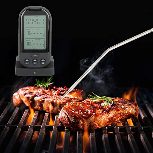Grill Meat Thermometer, Digital Display BBQ Thermometer, Kitchen Cooking Food Thermometer with Double Probe for Measuring Food/Liquid/Paste/Semi-Solid Material (0-250 ° C)(Black)