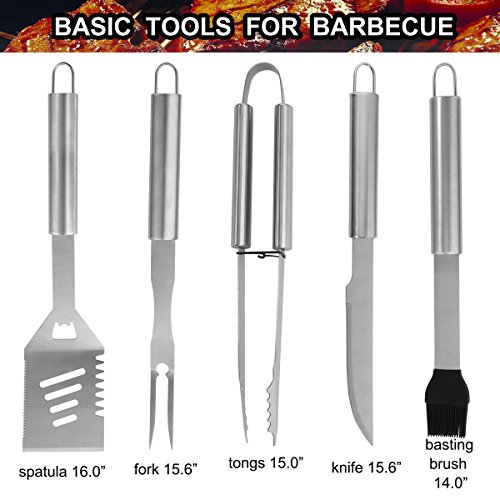 Premium Quality — Each barbecue tool is made from high quality stainless steel which is rust resistant for long-lasting reliability. All tools are easy to clean and dishwasher safe.