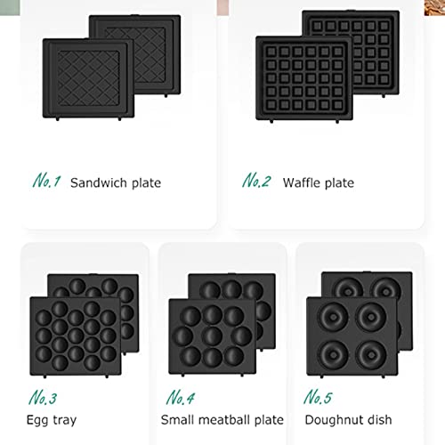 GYAM 2-in-1 Single Waffle Maker, Breakfast Maker Non-Stick Pan Electric Iron Mini Sandwich Toaster Kitchen Frying Pan for Meat and Eggs,B