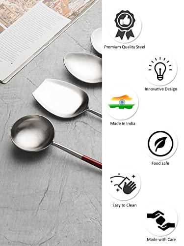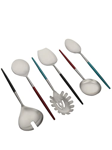 HIGH QUALITY & HEALTHY: Made from food grade high quality stainless steel rust free, B.P.A. free/toxin free and non reactive.DURABLE & FUNCTIONAL: Each item is one piece construction so do not bend and are unbreakable. This utensil set are designed to last for long years of cooking. Size of every tool is crafted so perfectly that you always serve ideal amount.
