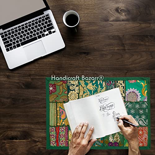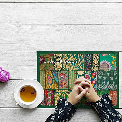 Handicraft Bazarr Mat Embroidery 12×18 Inch Traditional Bowl Mat Designing Dining Table Cloth Patchwork Table Place Mat Kambadiya Kitchen Mat Table Plate Mat Cotton Mat Set of 6