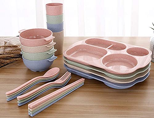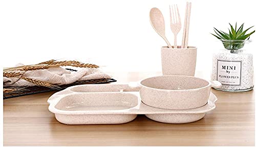 HARI Eco-Friendly Wheat Straw Tableware Dinnerware Set Comes with Plate Bowl Cup Spoon Fork and Chopsticks, Microwave & Dishwasher Safe (Beige)