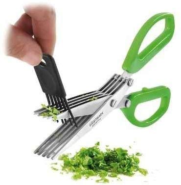 HARIHUB Branded Multi-Functional Stainless Steel Kitchen Knives 5 Layers Scissors for Kitchen use Cut Herb Spices Cooking Tools Vegetable Cutter with Cleaning Brush (Multicolor)
