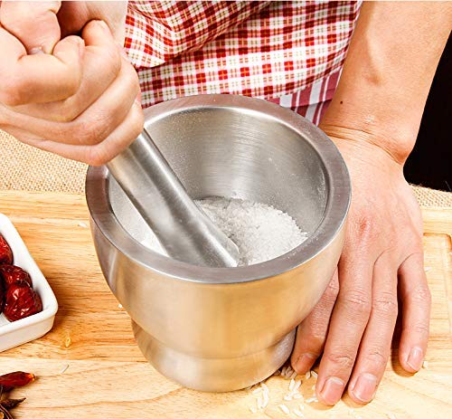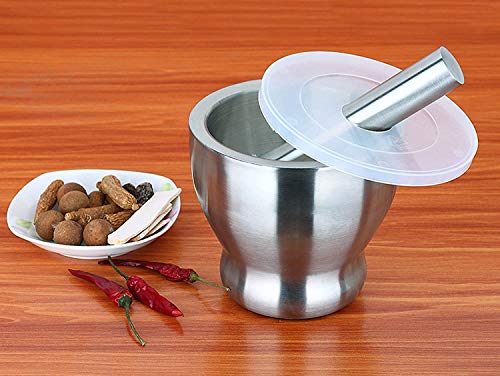 HariKrupa Mall Stainless Steel khalbatta/okhli/Khallad Mortar and Pestle Sets, Spice Grinder Pepper Crusher Bowl Pestle Mortar Grinder Kitchen Tool