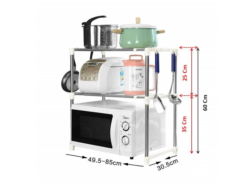 Product Dimensions : Length (53 cm), Width (30 cm), Height (55 cm) Multipurpose Kitchen Rack : Microwave Rack, Oven Rack, Dish Rack.