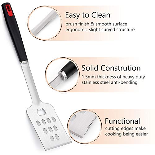 âś… EASY & SAFE TO USE – You will be impressed by our bbq grill accessories that built with long enough and heatproof handles to keep you away from splashing oil or flame, Ergonomic & non-slip frosted handle is easy to use, With a hanging loop for storage tidily without mess