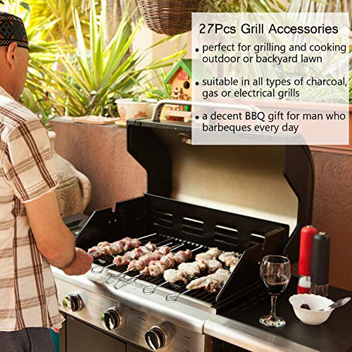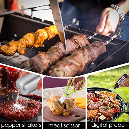 âś… ENRICH YOUR BBQ EXPERIENCE – 6 x essential tools to complete your grill set, kabob skewers keep your food from spinning or rolling, meat probe always keep you informed how well the food is cooked, grill mats stay your grill clean and a versatile pair of kitchen scissors