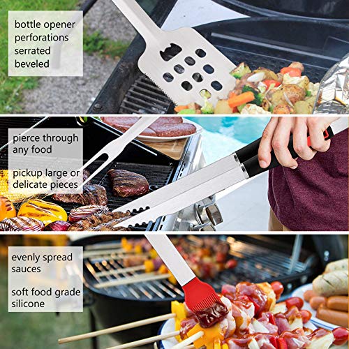 Anyone who enjoys barbecuing knows that the quality of grilling tools are as important as the taste of food. This grill tools set is made of premium 420 stainless steel