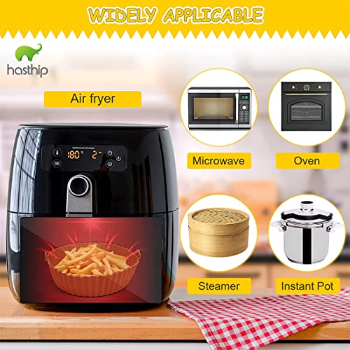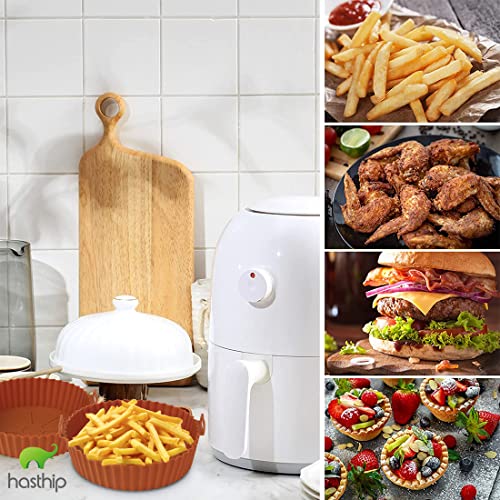 HASTHIP® Air Fryer Reusable Silicone Pot, 6.8 inch Non-Stick Silicone Air Fryer Liners with Ear Handles, Air Fryer Accessories, Round Air Fryer Oven Pot Foodgrade Silicone Heat Resistant (Brown)