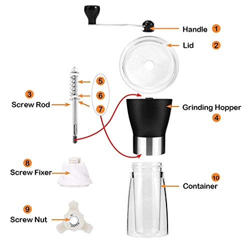 Longevity and Precise Grinding: The coffee grinder is made of adjustable ceramic burrs, which are conical in shape for more consistent grinds and can avoid frictional heating that can effectively reduce the loss of coffee beans flavour.