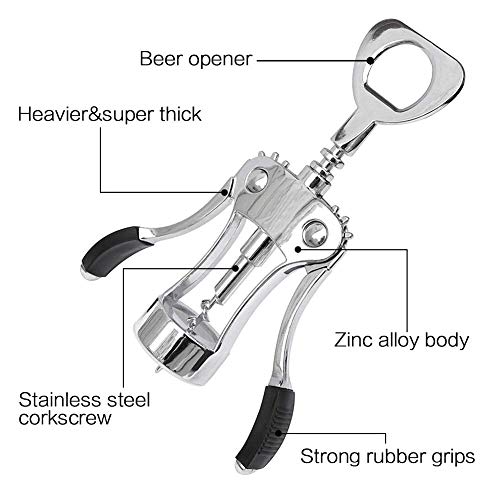 Easy to Use: The designer Wing style of this corkscrew, makes it easy to grip the unfolding wings while drilling and allows for effective pulling while removing the cork.