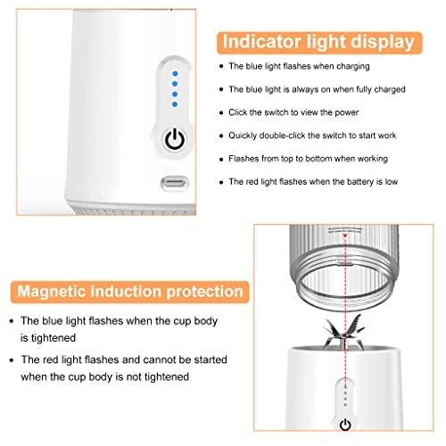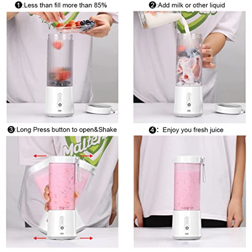 POWERFUL AND EFFECTIVE: The mini blender is equipped with a more powerful stronger 18000 RPM 7.4V motor, it only takes 30 seconds to get the juice or shake you want and be blended up. The durable stainless steel 6 blades can easily cut through ice and blend fruit.
