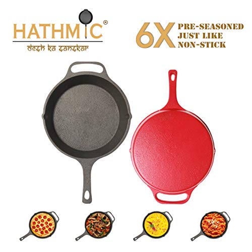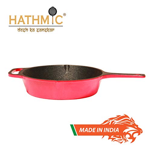 Hathmic Pre-Seasoned Cast Iron Skillet for Protein Lovers, Red 10.25 inch