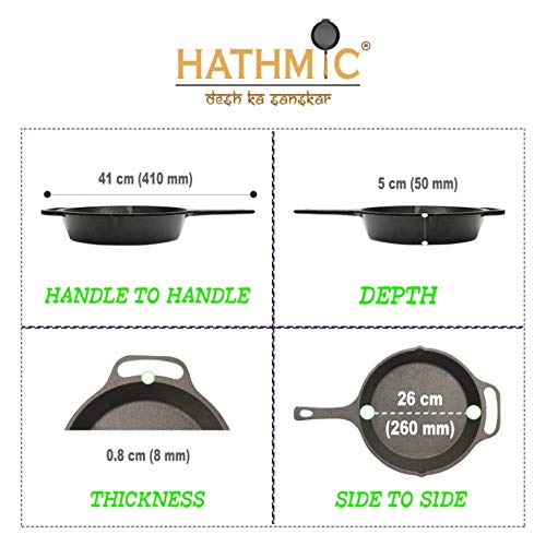hathmic Pre-Seasoned Cast Iron Skillet for Restaurant and Kitchen (Black, 10.25 Inch, 3 kg)