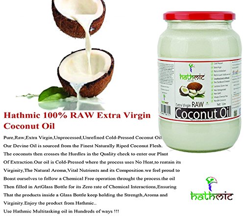 Hathmic Raw Extra Virgin Coconut oil is a natural replacement for all processed oils and butter. No Additives / Preservatives.Zero Transfat/Zero Cholestrol/Zero Lactose/Zero Gluten