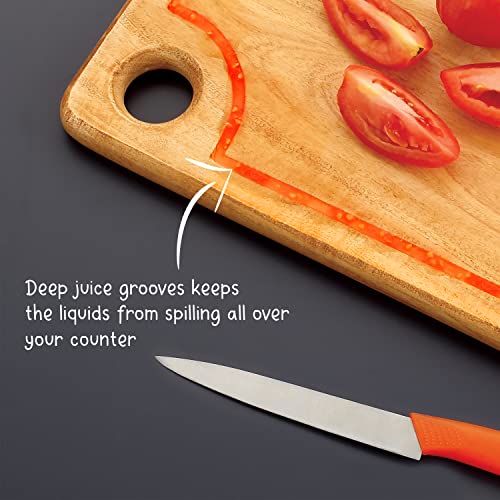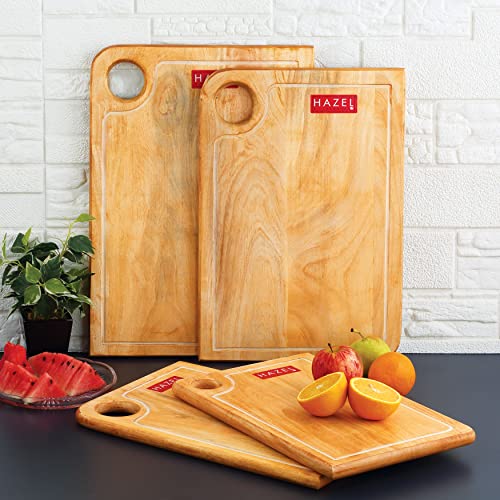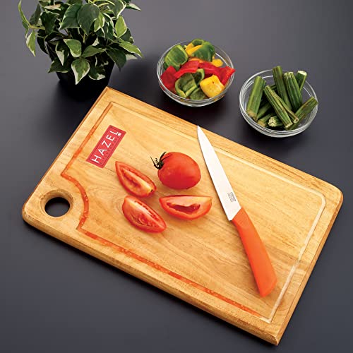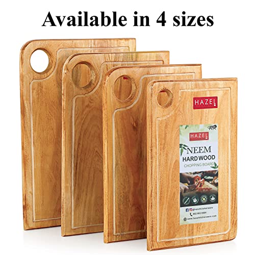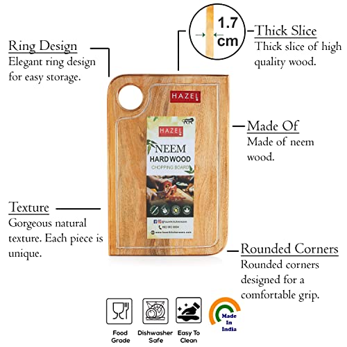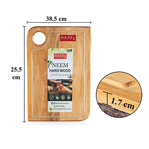 HAZEL Vegetable Chopping Board Made From Neem Wood |Chopping Board Wooden For Kitchen| Rectangle Shape Thick Wooden Chopping Board, Length 15 Inch
