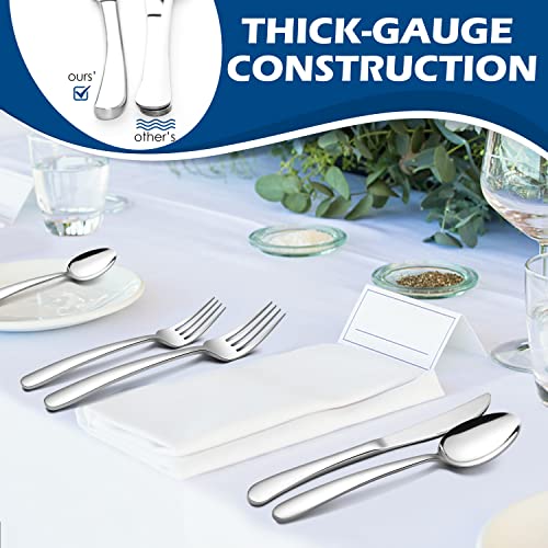 E-far 40-Piece Heavy Duty Stainless Steel Silverware Set is constructed of 18/0 stainless steel ensuring rust proof and nickel free, healthy for everyday use. Constructed by thick gauge steel to ensure durability and toughness and keep the cutlery set from bending, durable for long-lasting use. Elegant streamlined appearance fit well in any kitchen decor.