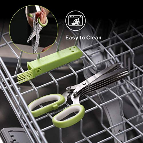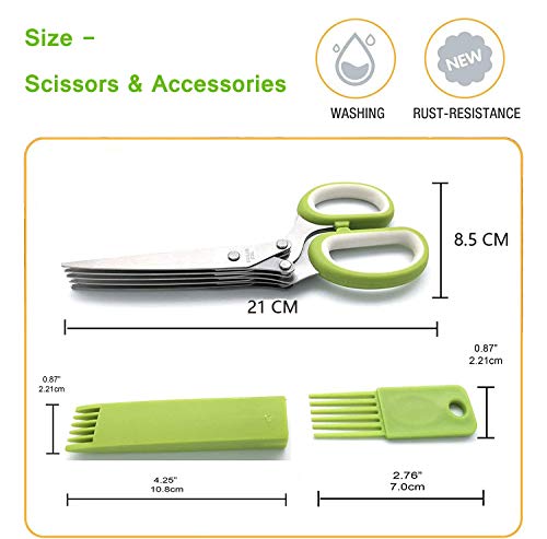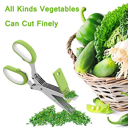 【5-Blade Herb Scissors】✅ High-quality multi-blade scissors made of stainless steel and rubber handles, with 5 sharp blades, which can help you cut herbs, leaves, chives, or paper quickly and safely. The protective cover protects the blades and prevents for finger cuts, Cleaning comb helps remove lingering herbs or chives in just a few swipes.