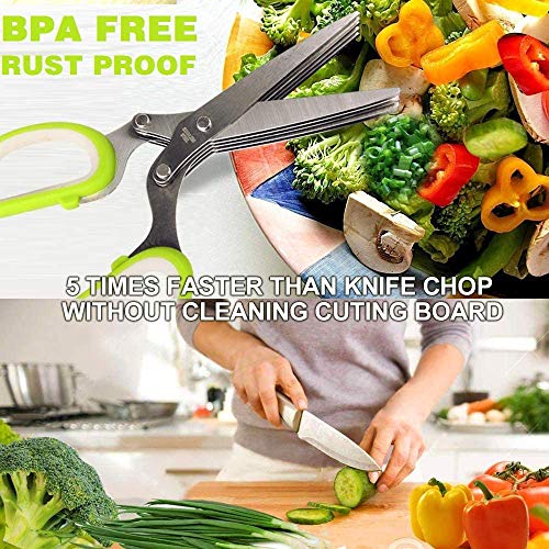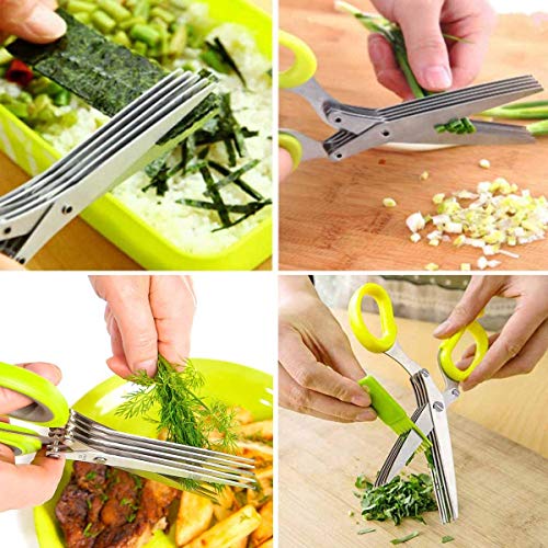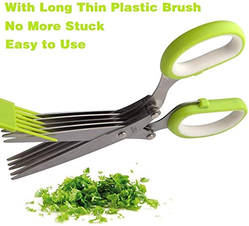 Herb Scissors Set Cool Kitchen Gadgets Gifts Kitchen Shears Scissors with Stainless Steel 5 Blades,Brush,Rust Proof,Sharp Cutting Garden Herb Garlic Leafy Greens Paper Shredding,Dishwasher Safe