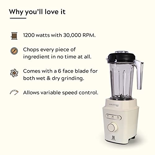 Hestia Appliances 1200W IQ Blender Pro, Kitchen Machine, 30000 RPM Grinder Blender for Kitchen, Smoothie Maker, Juicer Mixer Grinder Chopper Machine, Unbreakable Jars, SS Blades, Speed Control, Cream