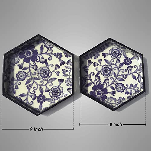Hexagon Trays Set of 2 | Serving Trays | Gift Item | Wooden Tray | Kitchen , Dining , Decorative Product | Resin Tray | Handmade | Handicraft Product | Neelkanth Tray (Blue-White)