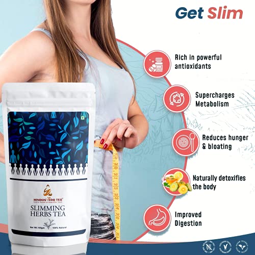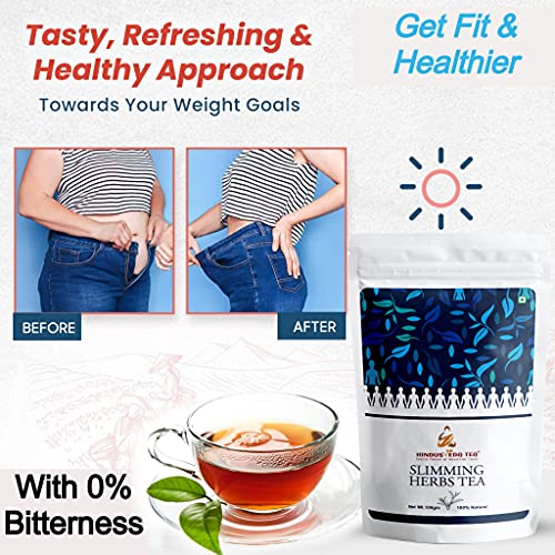 HINDUSVEDA TEA- Slimming Tea For Weight Loss & Detox (100 g-50 cups), Whole Leaf Green Tea For Weight Loss Fast With Garcinia Cambogia, Lemongrass, Ginger, Cinnamon, Turmeric & Senna Leaf |100 % Loose Leaf Herbal Weight Loss Tea With 0% Bitterness Burn Belly Fat Extra
