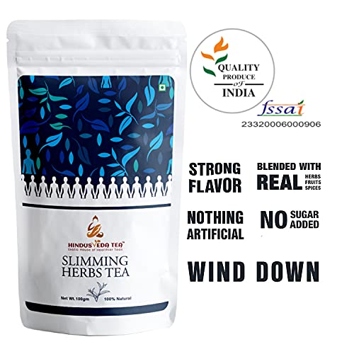 Hindusveda Slimming loose Leaf 100-gram herbal infusion has whole leaf Green tea, Lemongrass, Hibiscus,Garcinia Cambogia, Cinnamon, Turmeric, Senna Leaf & Ginger.