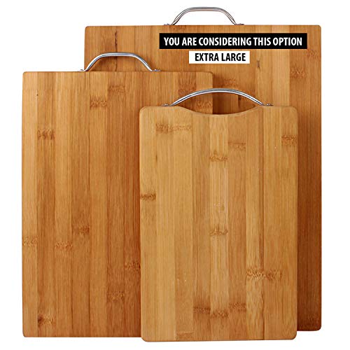 CHOP WITHOUT WORRIES – Made with super heavy-duty organic bamboo, all our deluxe jumbo wood cutting boards are specifically designed to withstand even your biggest and sharpest knives and cleavers. It is definitely sturdy enough to resist warping. You can use it as a fruit slicing board, bread cutting board, vegetable chopping boards or meat cutting board.