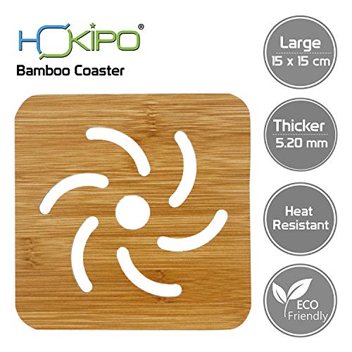 ALL NATURAL WOOD: Fun and stylish designs of this dining table coaster set for hot vessels will complement your décor, while strong construction durable materials will last a lifetime. HOKIPO pan pot holder heat insulation pad makes an amazing decor accent on the table. EASY CARE – Simply wash this wood coaster set with water & wipe clean. Size – 15 cm. Package content 4 Bamboo Wood Coasters for Home.