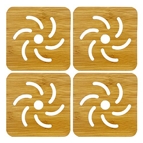 BAMBOO WOODEN COASTERS SET OF 4 – HOKIPO heat pad for dining table coasters are made of natural eco-friendly bamboo. This wooden coaster set help protect countertops, tabletops, dining table, kitchen surfaces from heat damages. Each wooden coaster has a thoughtful functional design to promote air circulation & to prevent heat build up.
