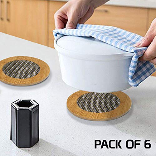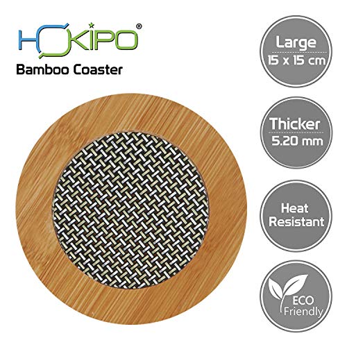 ALL NATURAL WOOD: Fun and stylish designs of this dining table coaster set for hot vessels will complement your décor, while strong construction durable materials will last a lifetime. HOKIPO pan pot holder heat insulation pad makes an amazing decor accent on the table. EASY CARE – Simply wash this wood coaster set with water & wipe clean. Size – 15 cm. Package content 6 Bamboo Wood Coasters for Home.