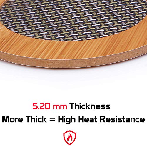 HIGH HEAT RESISTANCE – HOKIPO wooden coasters for dining table hot pots are designed with thickness of 5.20 mm. These wood coaster heat resistant pan pot holder for dining table allows you to safely keep your hot dishes from the oven or hot pots from the stove safely.