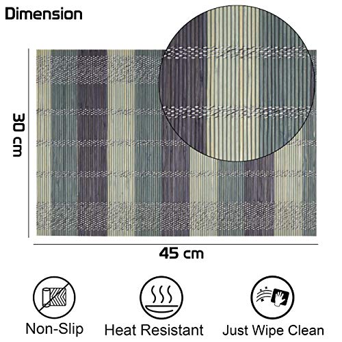 HOKIPO ® Heat Resistant Wooden Placemats Set of 6 Dining Table Mats, 45×30 cm, Multicolor
