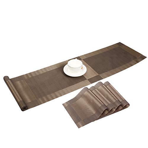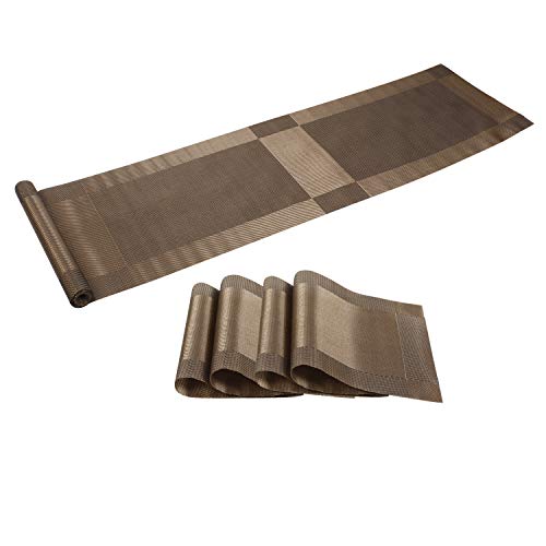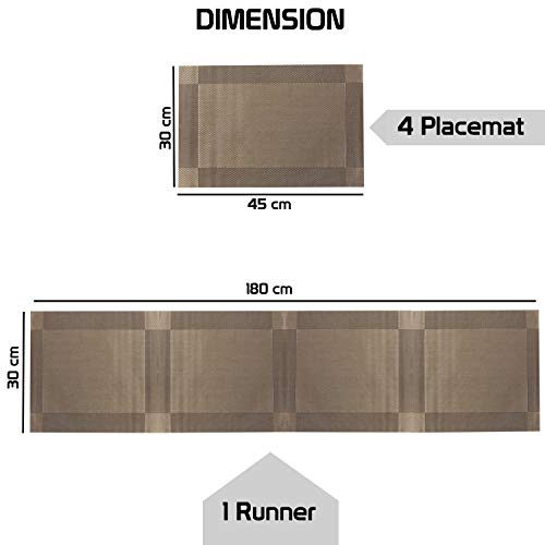 Quality Material – This set of 4 dining table mats with runner are made using blend of 70% PVC and 30% Polyester.