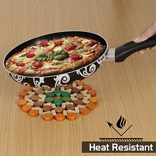 HOKIPO Round Bamboo Table Coaster, Pan Pot Holder, 16 x 16 cm, 4 Piece Set