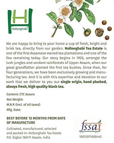 Single origin CTC tea, cultivated, plucked, selected and packed with the uttermost care at Hollonghabi Tea Estate.