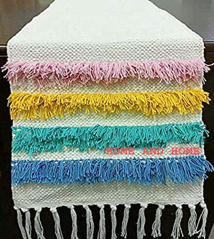 Home and Home Cotton Table Runner -The Style of Our Table Linen and Dining Rooms and Eating Areas flawlessly (Standard Size13 x 72 inch White Multi)