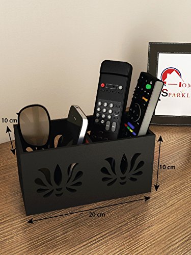 Home Sparkle Multipurpose Wooden Organizer Cum Holder for Remotes| Mobile Phones| Kitchen and Desk Accessories (Black)